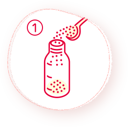 - 添付スプーンすりきり1杯(約2.6g)をできあがり量20mlの割合に溶かします。