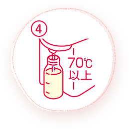 - 一度沸騰し少し冷ました70°C以上のお湯での調乳ですので、調乳後はミルクを速やかに冷まし、赤ちゃんのやけどを防ぐため、必ず體(tǐ)温ぐらいになっていることを確認して飲ませてあげてください。