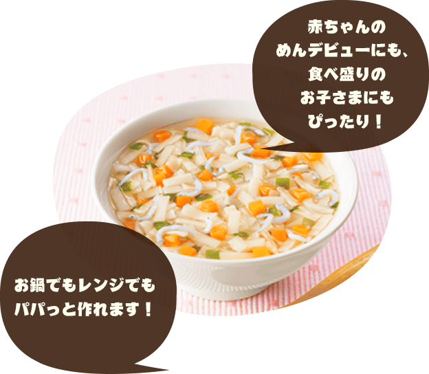 毎日の離乳食作りを簡単にする赤ちゃんのための乾めんです。